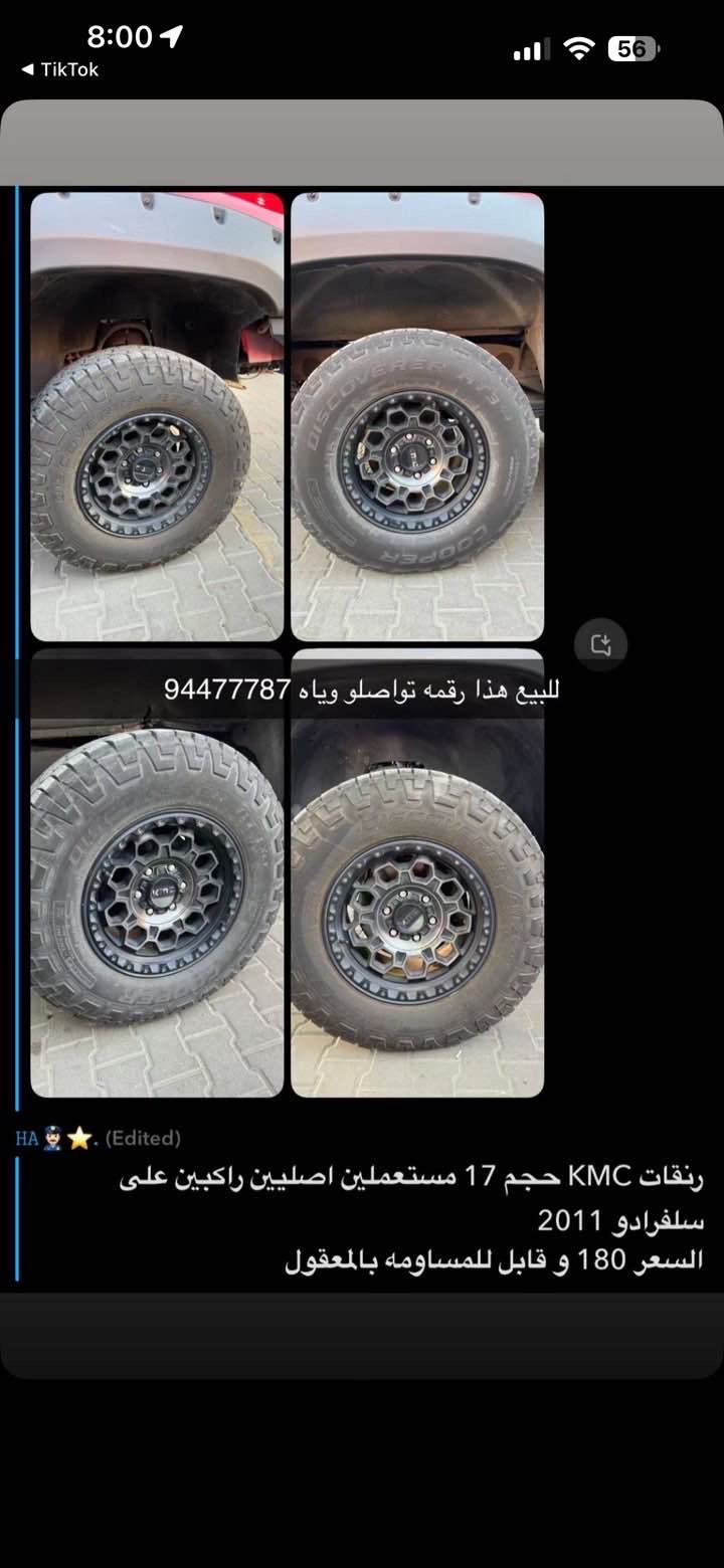 للبيع ٤ رنقات KMC اصليين حجم 17 مستعملين نظاف و البيع فقط الرنقات من دون التواير و السعر قابل للمساومه بالمعقول